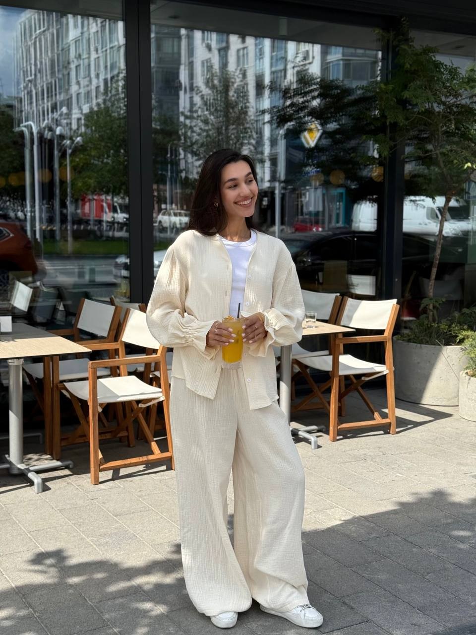 Це саме той костюм, який підкорив серця багатьох — тепер у ще більш зручному та стильному варіанті зі штанами! Легкий, дихаючий, трендовий — ідеально підходить для прогулянок, подорожей, роботи чи відпочинку. Його просто хочеться носити щодня!